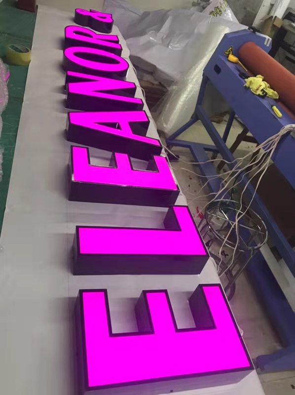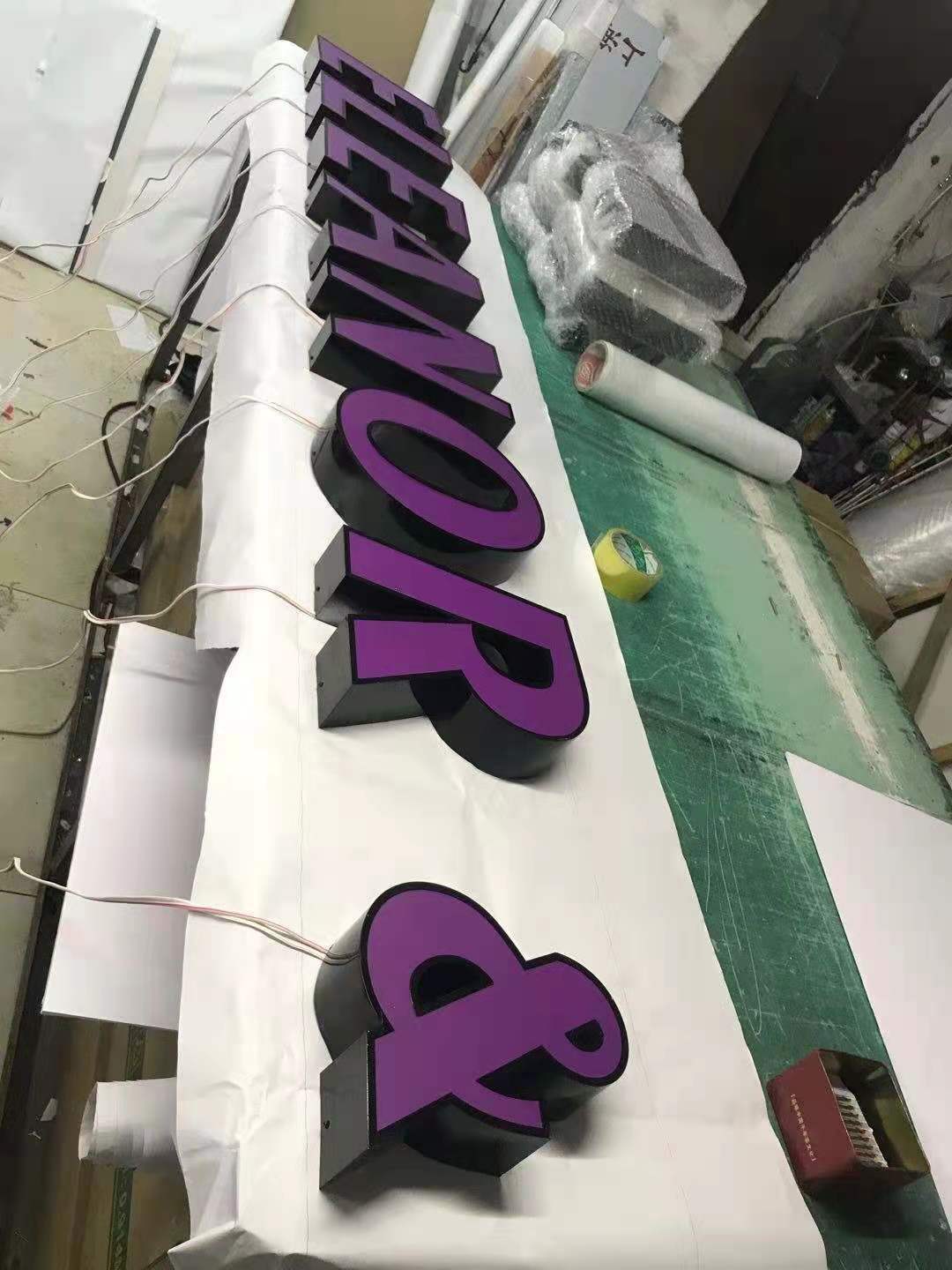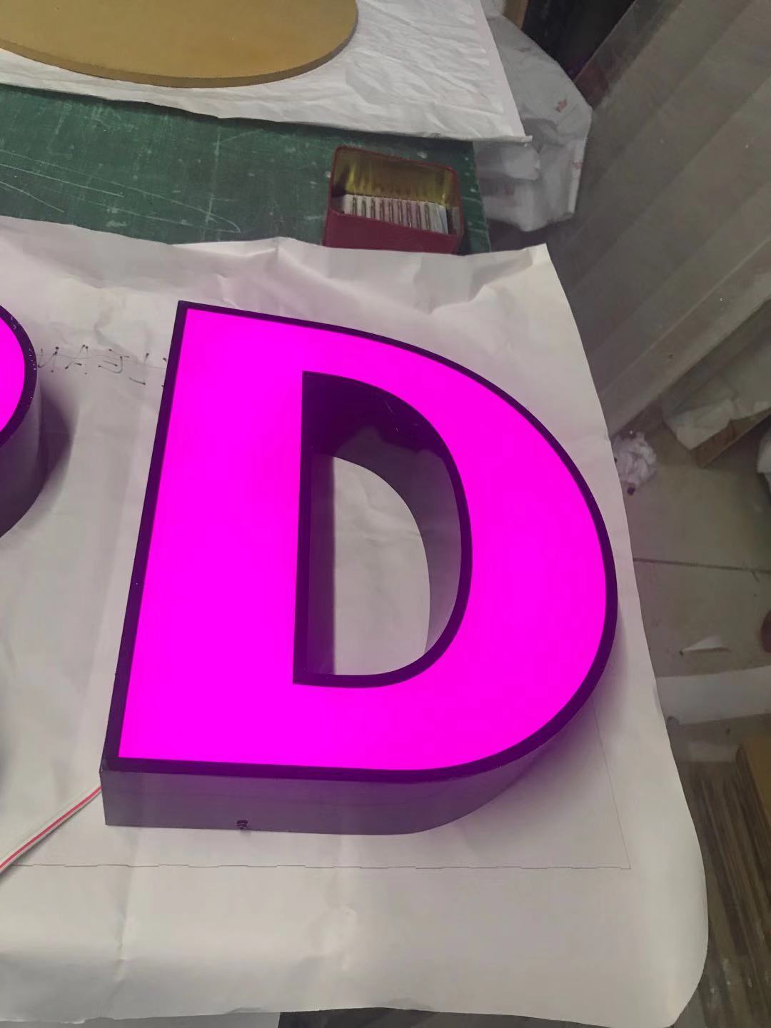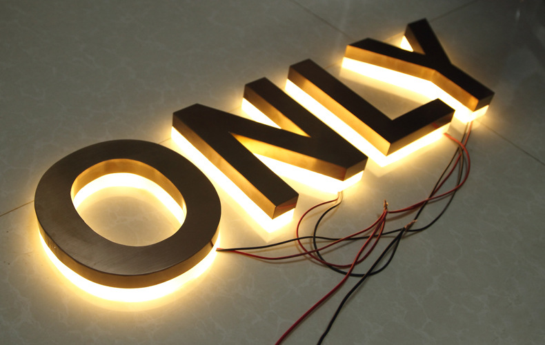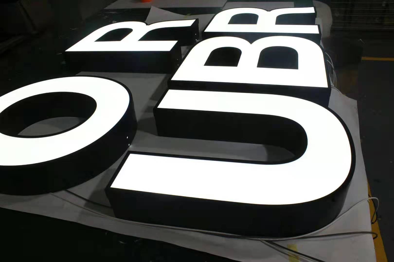 灯箱字:用201不锈钢或者是304不锈钢 围边2CM 内装6000K灯带,面扣奶白胶板 面贴威士柏膜,侧面烤油漆