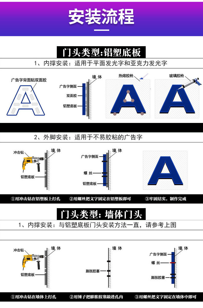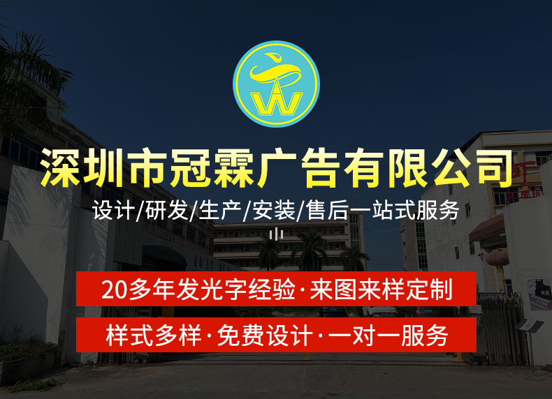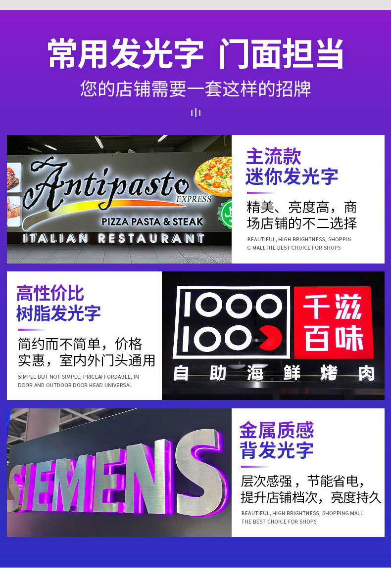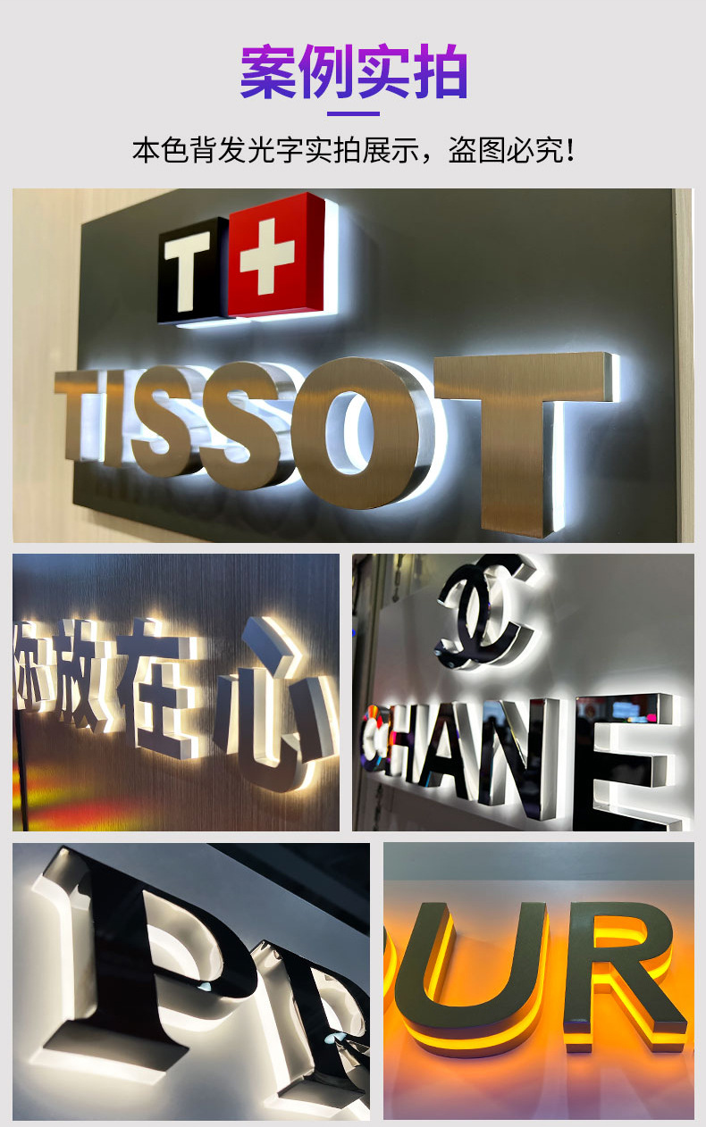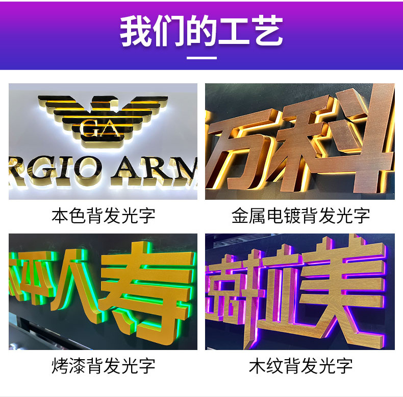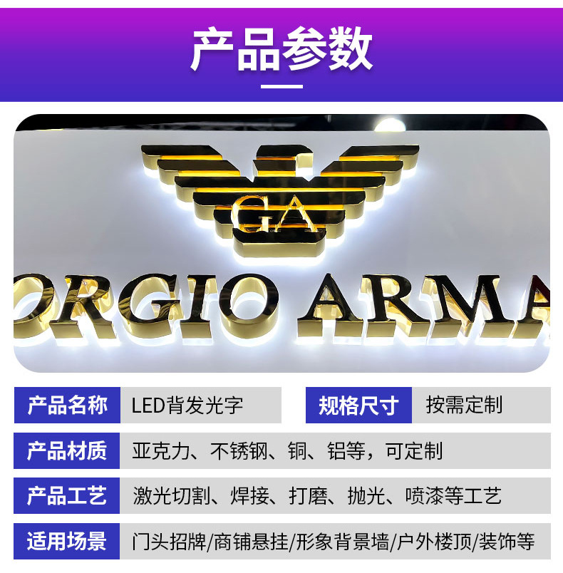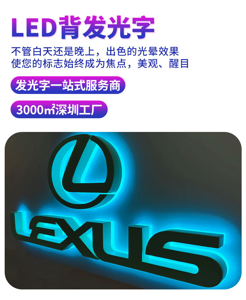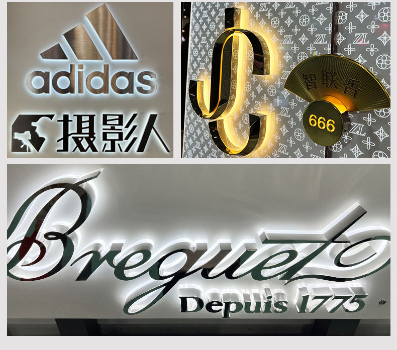 发光字招牌门头广告牌制作商场无边不锈钢LED亚克力通体背发光字'